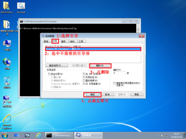 为了防止系统安装出错后,无法修复的问题。我们在PE环境下,系统部署完成后,会给系统添加本地PE引导,下面的方法是系统正常安装完成后,如何去掉windows PE引导项