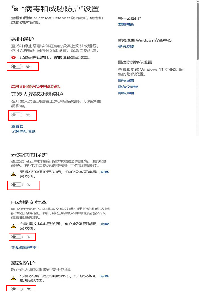 1:先要手动关闭defender的实时保护功能和防篡改功能,然后再禁用